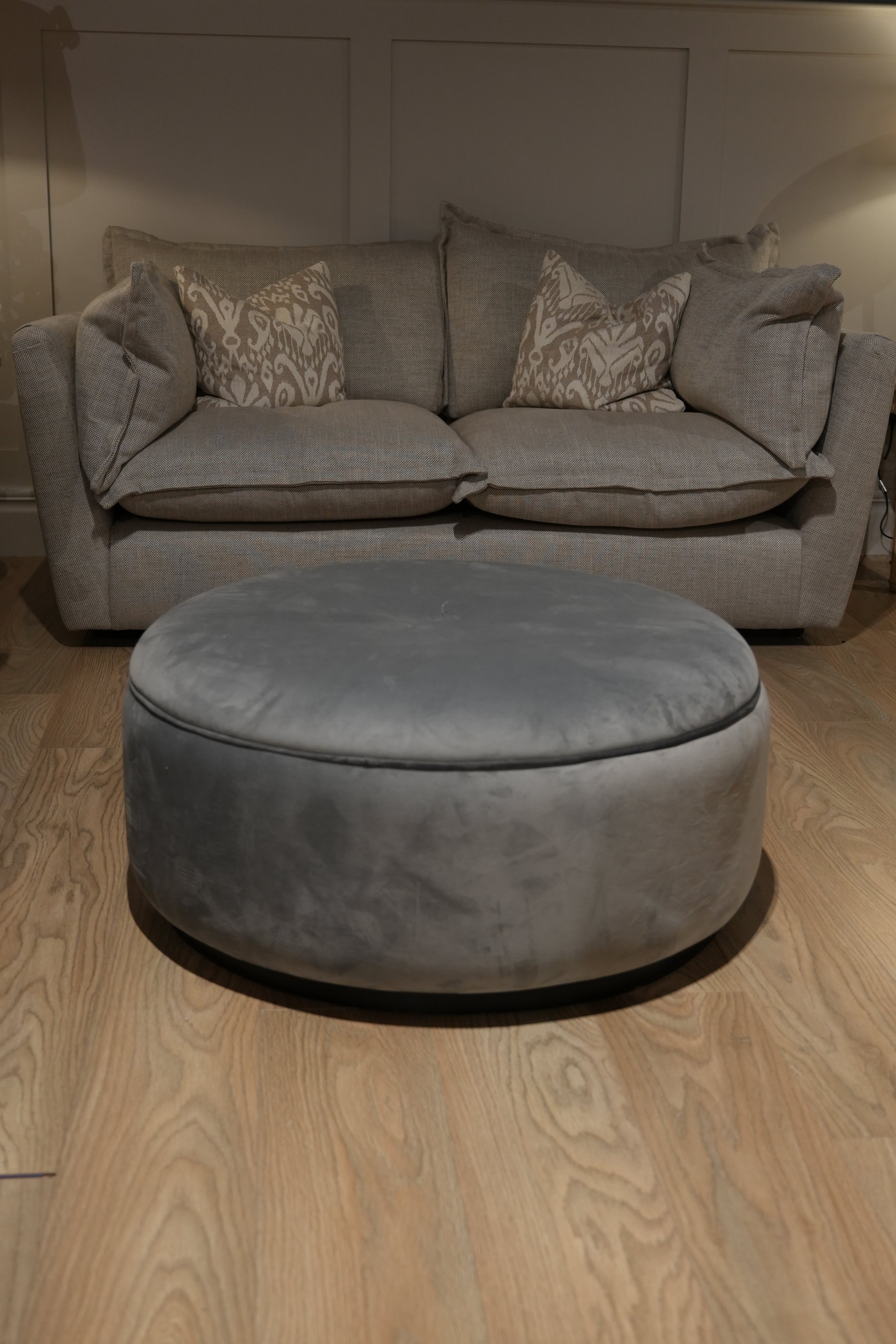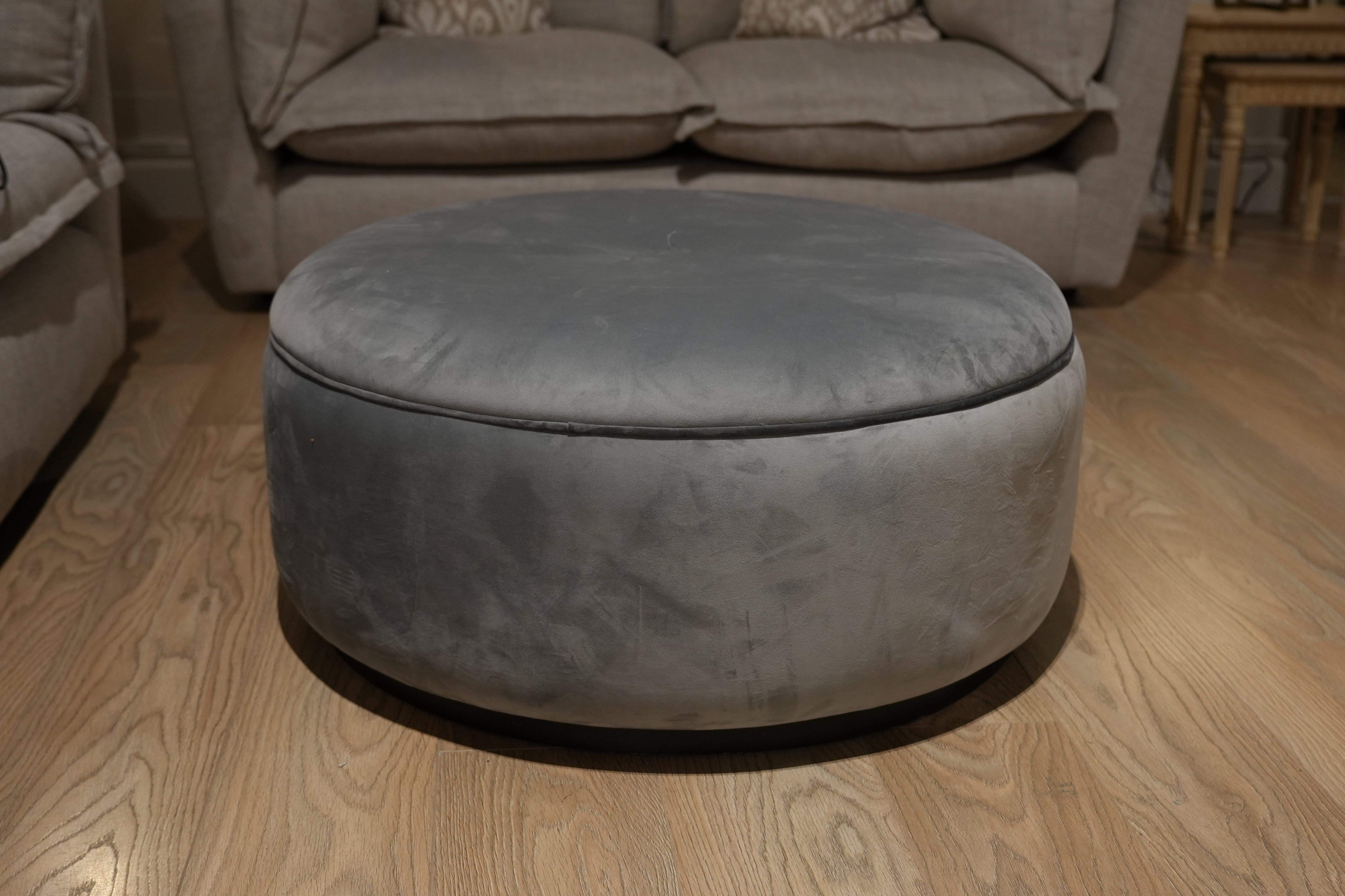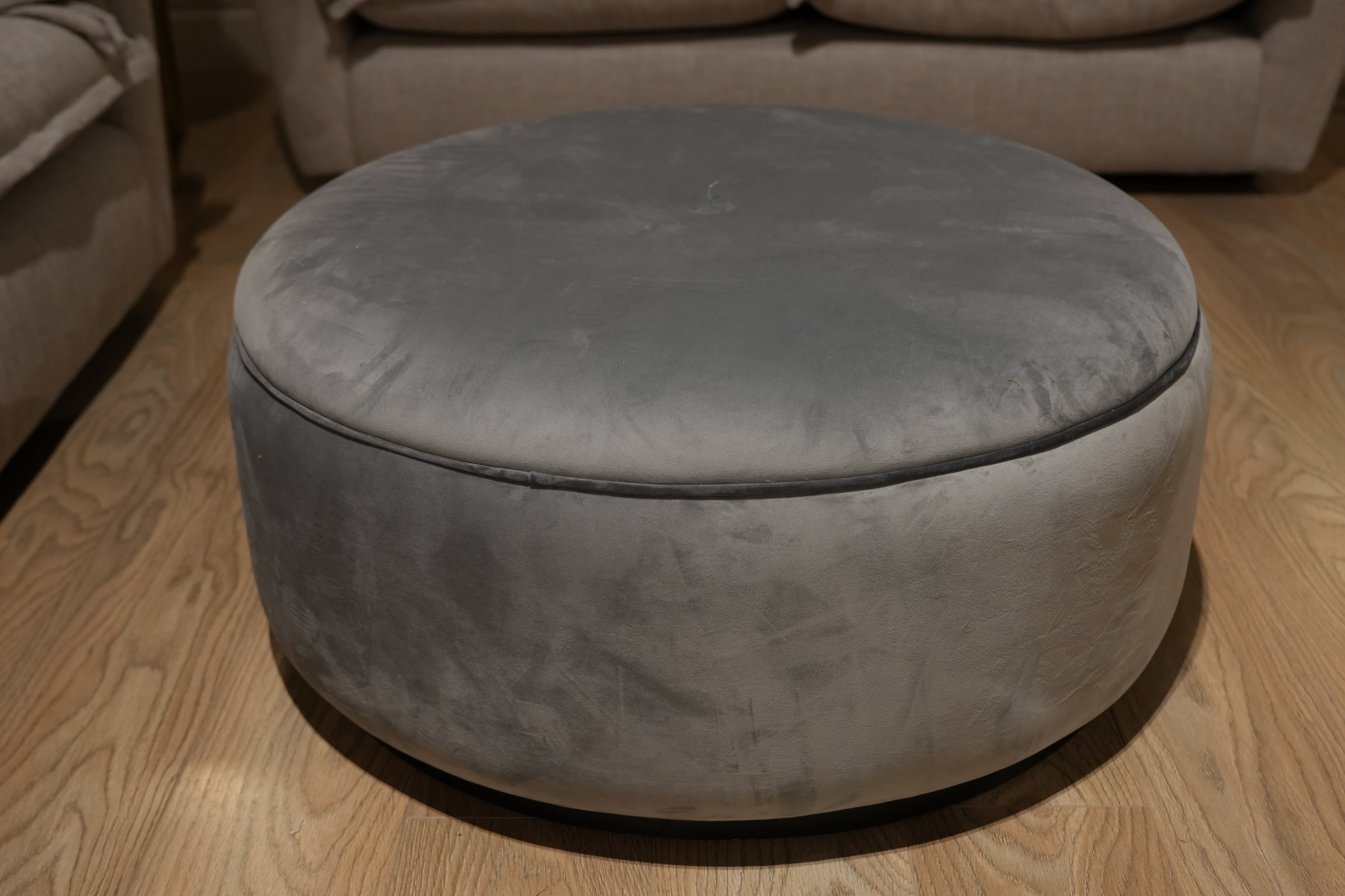 Large Grey Round Footstool