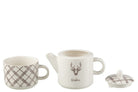 Tea Pot and Cup Reindeer White/Brown
