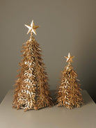 Bring festive elegance to your home with this Golden Leafy Xmas Tree. Crafted from durable iron with an intricate leaf-textured design, this compact decorative piece stands 44 cm tall with a 23 cm diameter base, making it ideal for shelves, side tables, or entryway displays. Its refined golden finish complements both contemporary and traditional interiors, adding a touch of seasonal sophistication without overwhelming your space. Perfect for layering with other festive accents or displaying as a standalone statement piece.