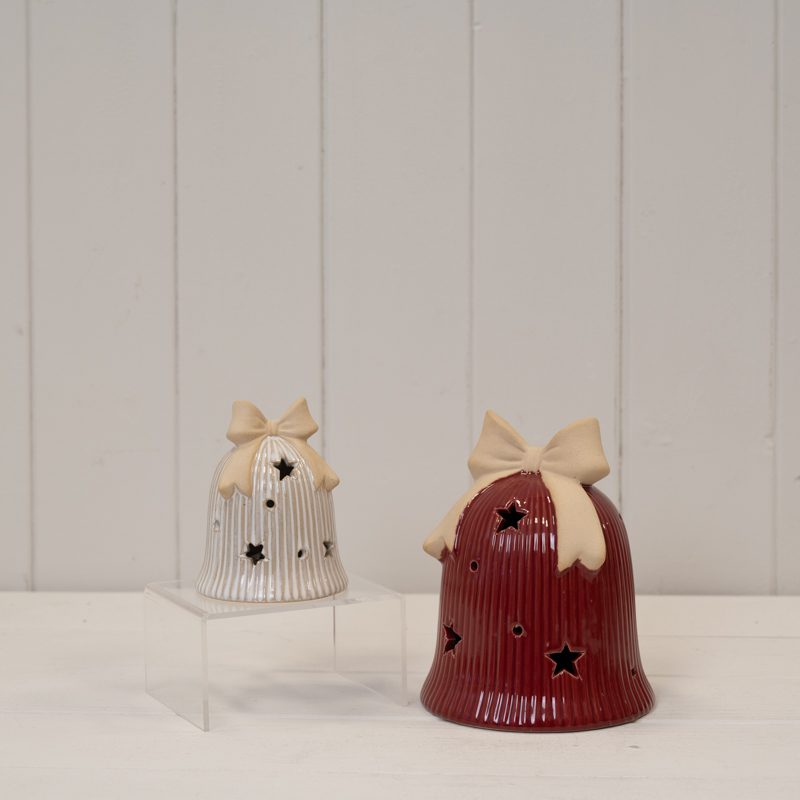 Red Ceramic Bell Large with LED Handcrafted ceramic bell in rich red, finished with integrated LED lighting to create a warm festive glow. Measuring 12.1cm wide by 15.4cm tall, this substantial piece commands attention as a standalone display or grouped with complementary seasonal décor. The ceramic construction offers durability and a refined aesthetic that transcends single-season use, while the LED mechanism provides ambient illumination without requiring candles or open flames. Ideal for mantels, shelving, or entryway styling during the Christmas period and beyond.