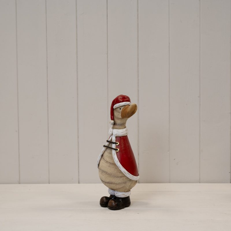 This charming polyresin duck combines festive appeal with practical durability for your Christmas display. Measuring 31.3cm in height, it features authentic Santa hat detailing that captures seasonal spirit with character. The polyresin construction ensures longevity through multiple holiday seasons, resisting fading and weathering. Ideal for indoor shelving, mantels, or outdoor garden settings, this decorative piece brings whimsical charm to any festive arrangement whilst maintaining a refined aesthetic suitable for discerning home décor enthusiasts.