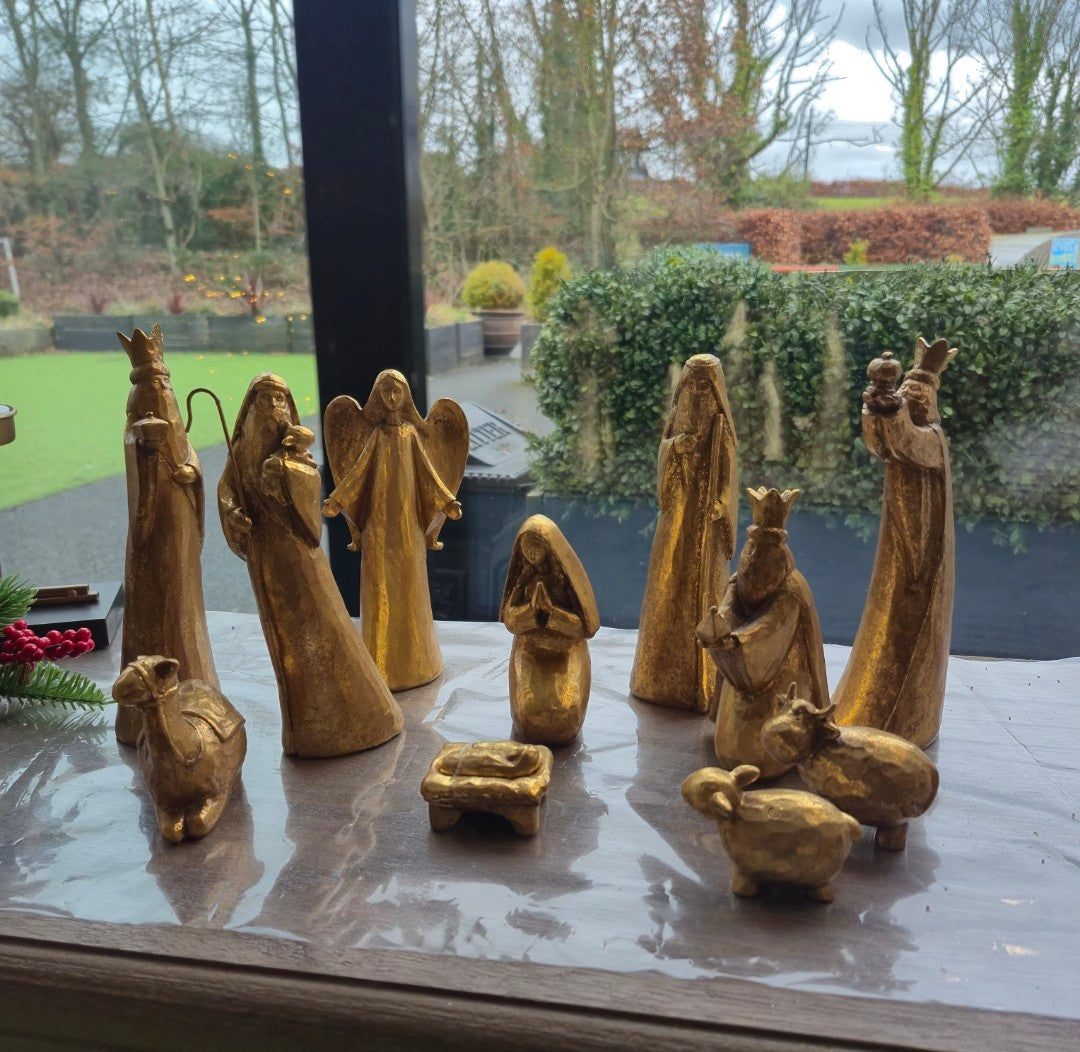 Celebrate the spirit of Christmas with the Golden Nativity set, a refined centerpiece that brings warmth and tradition to your holiday décor. Crafted with meticulous attention to detail, its elegant golden finish highlights each figure, creating a timeless display that honors the nativity story. Ideal for showcasing faith and adding a sophisticated glow to your seasonal decorations, this set combines artistry with meaningful symbolism to enrich your festive atmosphere.