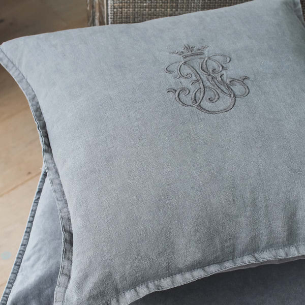 Grey Crown Monogram Linen Cushion