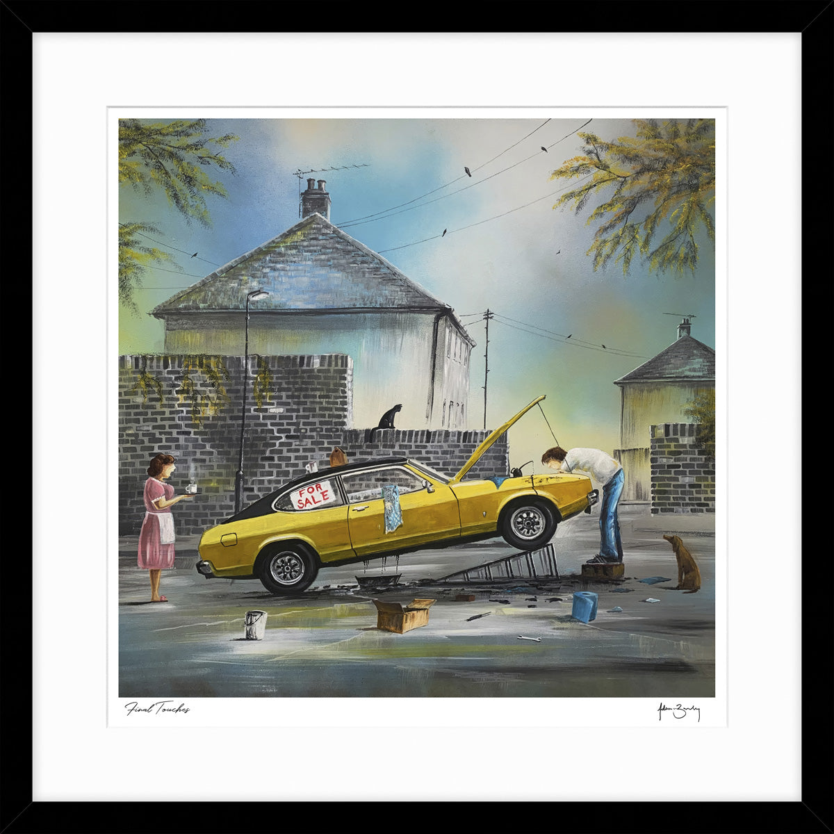 Final Touches by Adam Barsby measures 61.5cm by 61.5cm, presenting a bold and refined artistic statement. This piece combines scale and detail to create a captivating focal point, ideal for elevating contemporary interiors with expert craftsmanship.