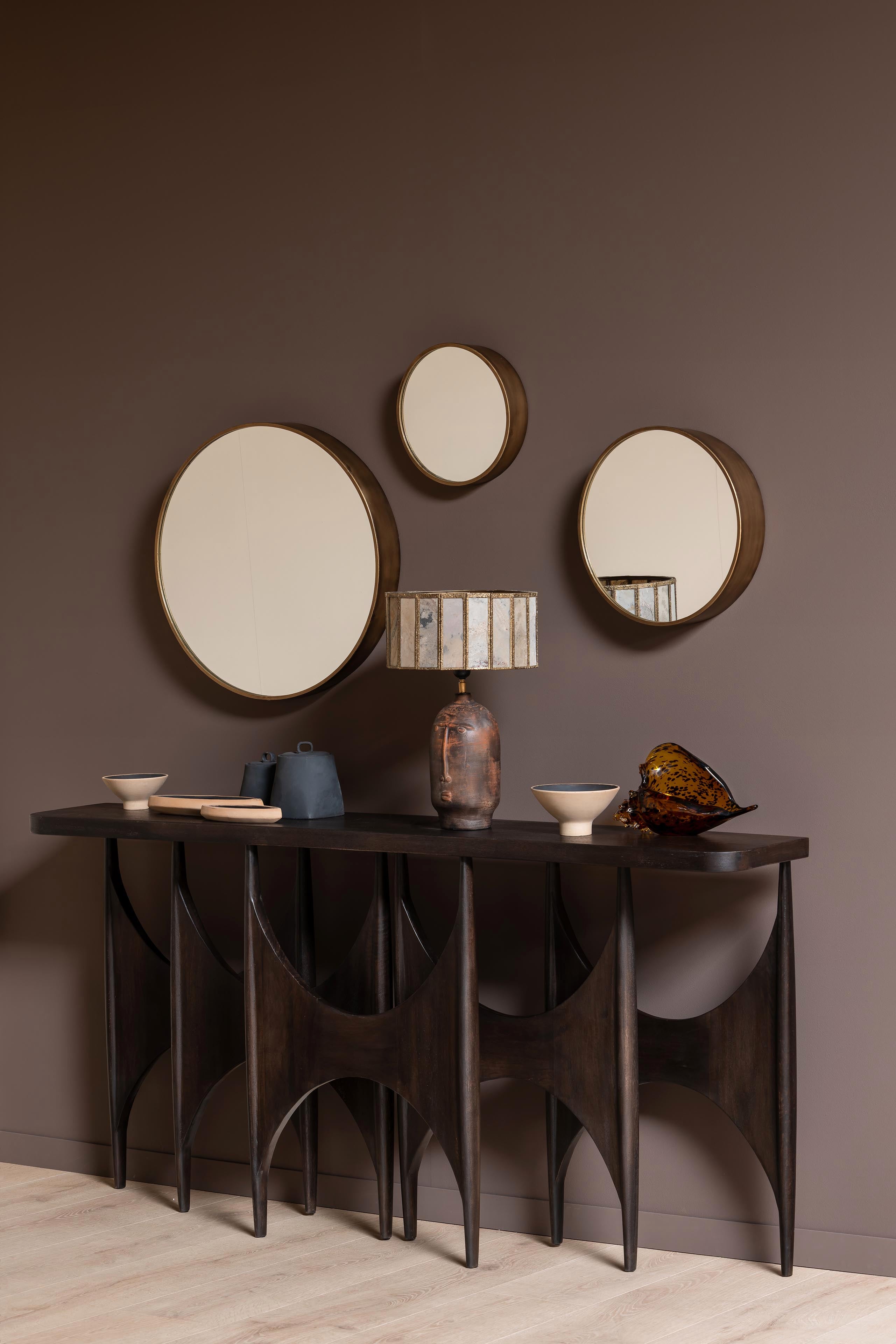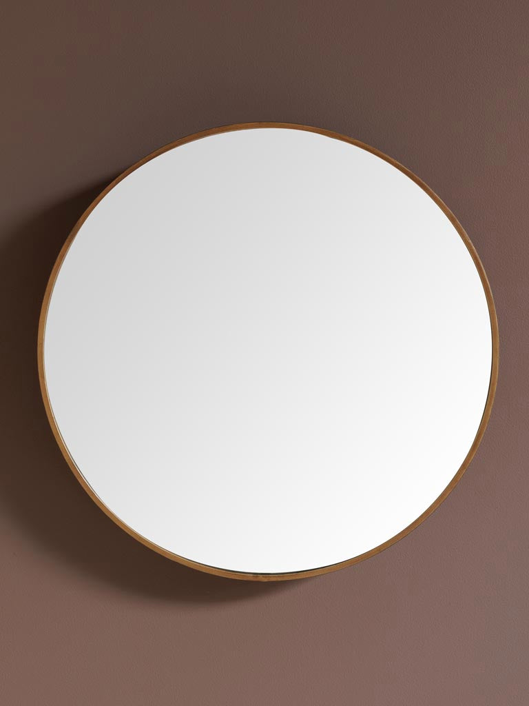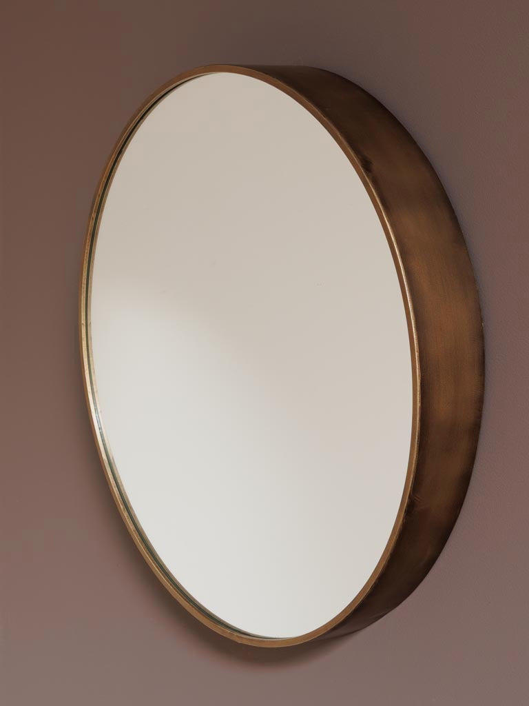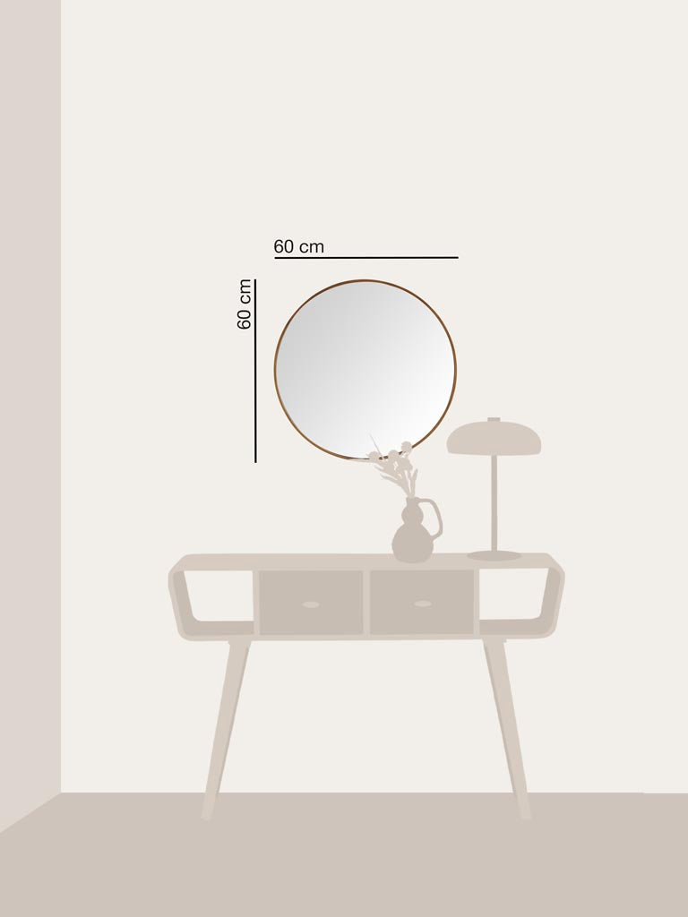 A striking 60 cm diameter mirror with a warm copper finish that captures light and adds depth to any room. The vintage-inspired frame brings character and timeless appeal, whether positioned above a console, in an entryway, or as a statement piece in a bedroom. The generous scale makes it ideal for creating a sense of openness while the copper patina develops a rich, lived-in quality over time. A functional accent that elevates both traditional and contemporary interiors.