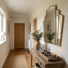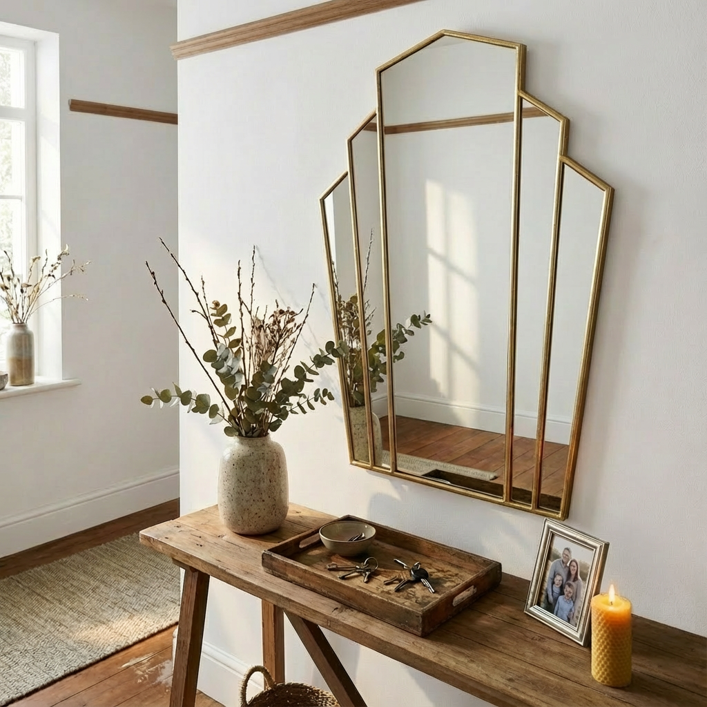 Make a refined statement with this striking gold wall mirror, designed to elevate any interior with understated luxury. Measuring 1000mm in height and 700mm in width, its generous proportions command attention while its warm metallic frame adds depth and warmth to living spaces, hallways, and bedrooms alike. The substantial scale reflects light beautifully, creating an illusion of expanded space whilst serving as both a functional piece and a sculptural accent. Perfect for those seeking timeless elegance with contemporary appeal.