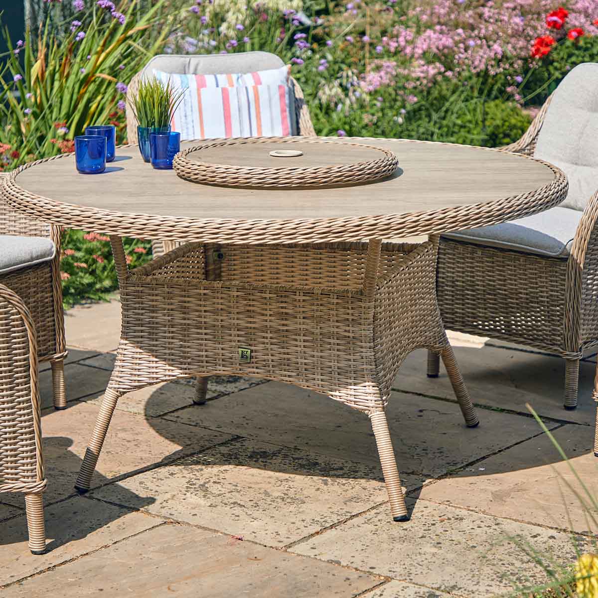 Regent Sand 6 Seat Dining Set w/ Lazy Susan & Parasol