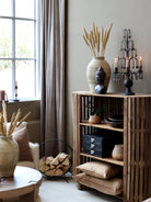 The Grimaud Shelving Unit features a sturdy frame crafted from recycled wood, combining sustainability with durability. Designed to hold up to 10 kg per shelf, it offers reliable storage across its three spacious shelves. With a net weight of 40 kg, this unit provides a solid foundation for organizing your space while contributing to eco-friendly living. Ideal for homes seeking a blend of strength and environmental responsibility.