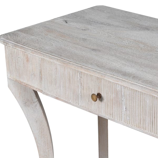 Crafted from sustainably sourced mango wood, this single-drawer side table combines practical storage with understated elegance. The fixed shelf provides dedicated space for books, décor, or everyday essentials, while the generous drawer keeps smaller items within easy reach. At 860mm wide and 850mm tall, it fits seamlessly beside sofas or beds without overwhelming the space. The solid construction and warm wood grain make it a durable addition to contemporary or transitional interiors.