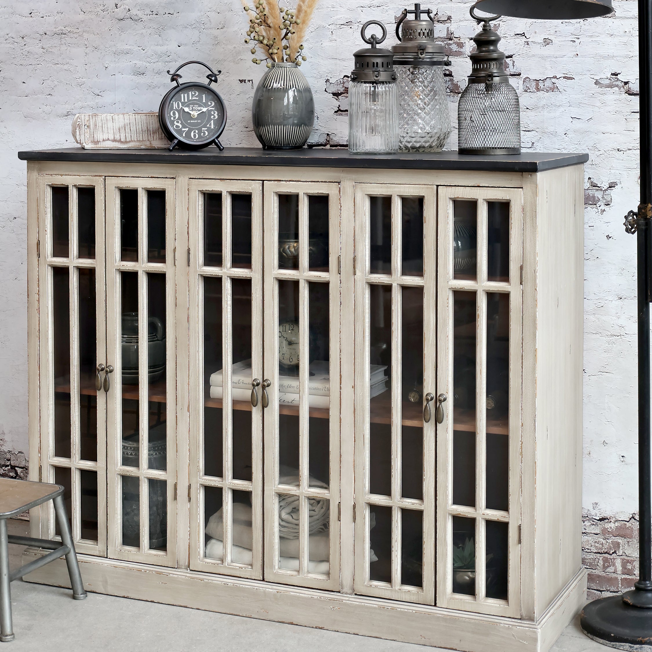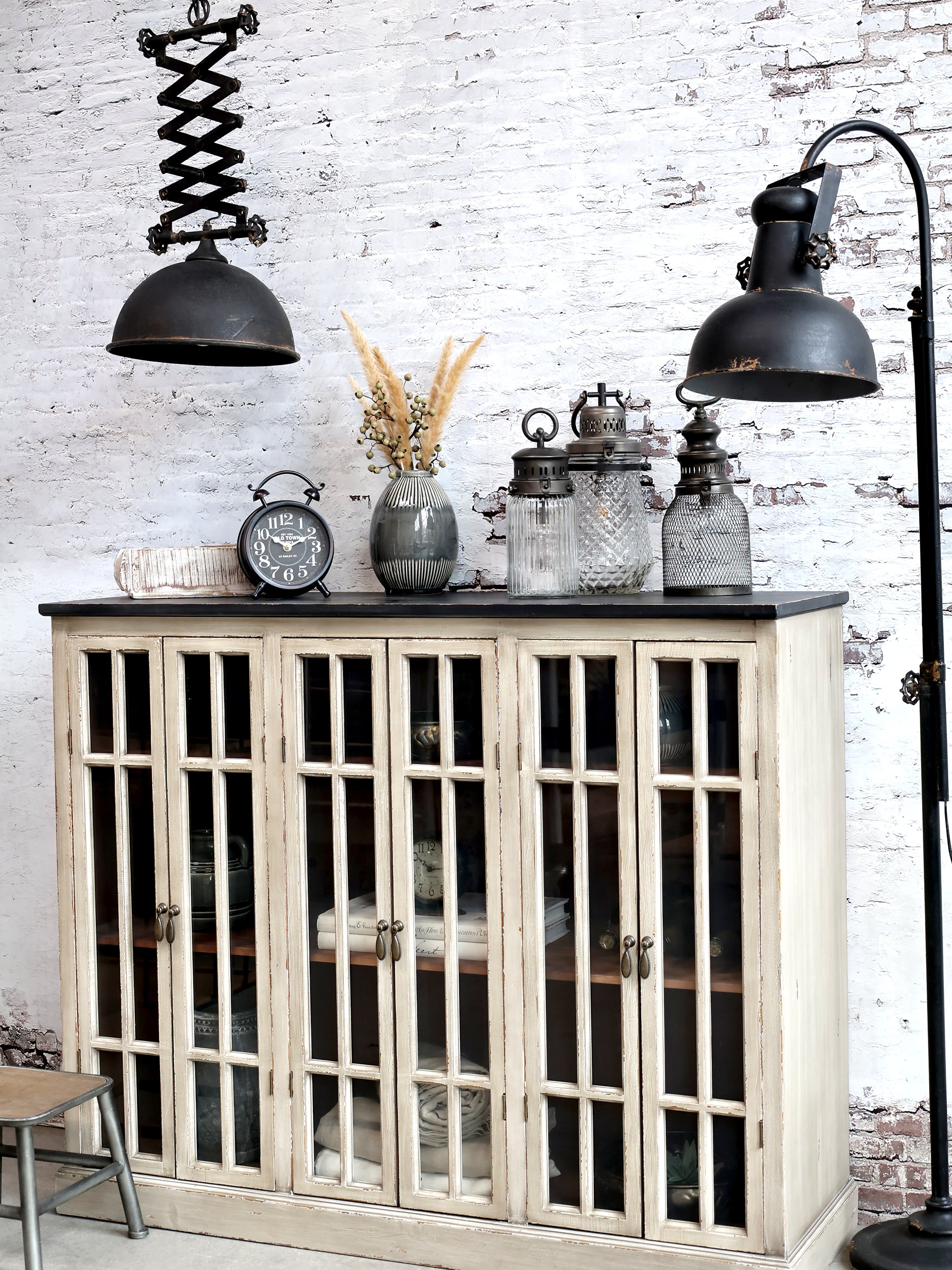 Crafted from durable pine wood, MDF, and glass, this sand-colored cabinet features six spacious drawers and a sleek black top, combining heritage style with practical design. Each shelf supports up to 15 kg, providing sturdy storage for your essentials. Weighing 36.5 kg, this cabinet offers a balance of robustness and elegance, ideal for organizing your space efficiently.