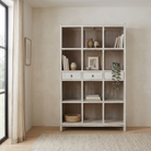 Three central drawers add practical, concealed storage. Ideal for paperwork, linens, or smaller household items, they reinforce the Ashford’s utility-led design. This is a bookcase rooted in function first, with proportions that feel architectural rather than decorative.