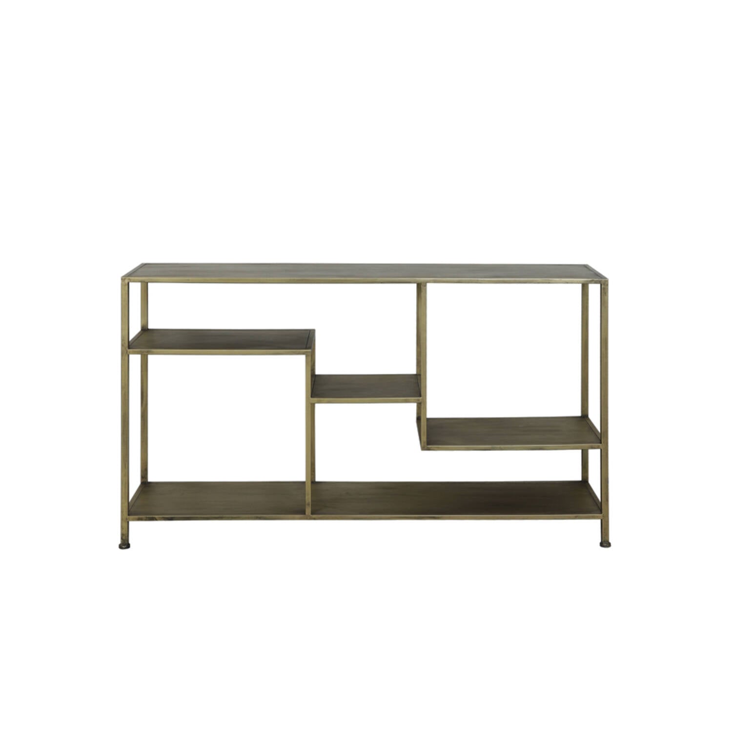 The Yvana Gold Console Table combines elegant design with sturdy craftsmanship. Featuring a rectangular metal frame finished in a rich antique gold, its dimensions of 141 cm length, 81 cm height, and 37 cm width offer a balanced presence ideal for entryways or living areas. Weighing 13.5 kg, this table provides reliable stability while showcasing a refined metallic sheen that enhances any interior with timeless sophistication.