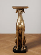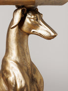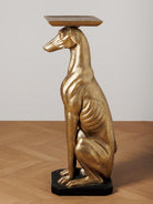 The Greyhound Side Table combines vintage charm with artistic design, featuring a gold-colored resin sculpture of a greyhound dog. Standing 83 cm tall with a tray balanced on the dog’s head, it offers a unique and functional surface measuring 28 cm in depth and 35 cm in width. This elegant piece serves as both a decorative accent and a practical table, perfect for adding character to any room.