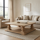 The Calder Coffee Table is defined by proportion, weight, and craftsmanship. Designed as a true centrepiece, its square format and substantial column legs give it a grounded, architectural presence within a room.