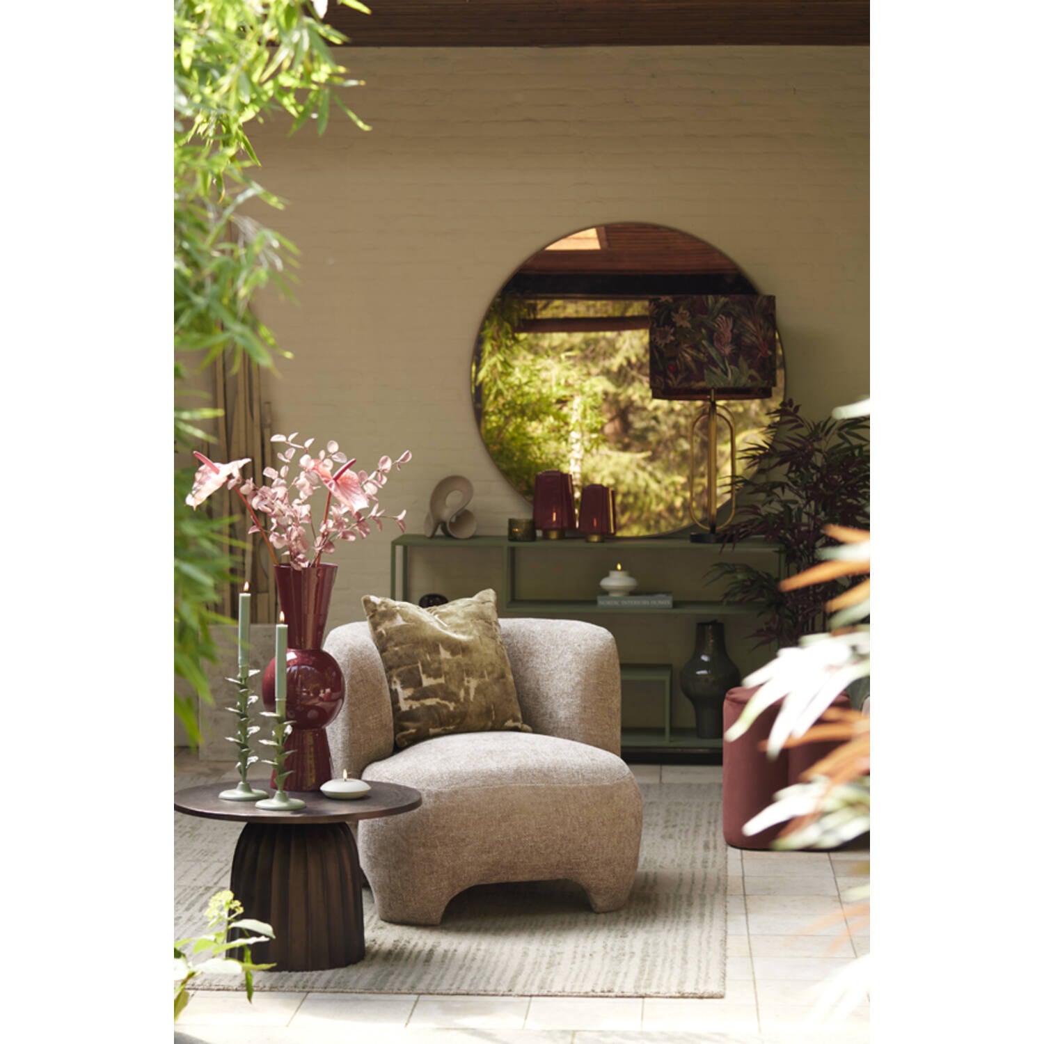The Veglia Side Table features a modern design with a matte dark brown finish, measuring 60 cm in diameter and 38 cm in height. Its sleek and minimalistic profile makes it a versatile addition for contemporary interiors, providing a functional surface without overwhelming the space. The matte finish offers a subtle texture that enhances its sophisticated appearance, making it suitable for both living rooms and office settings.