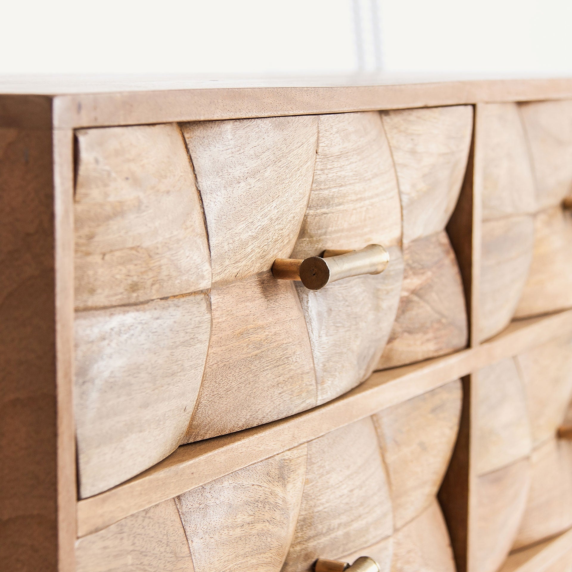 The Castello Chest of Drawers features a sophisticated blend of brown iron and gold mango wood, offering a striking contemporary look. Crafted with durable iron in a rich brown finish, it is paired harmoniously with the warm tones of gold-hued mango wood. Designed with versatility in mind, this chest of drawers is fully detachable for easy relocation or transport, combining style and practical functionality for modern living spaces.