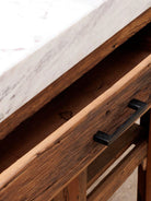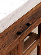 This White Marble Kitchen Island combines recycled wood craftsmanship with elegant marble surfaces, embodying Mediterranean authenticity. Measuring 94 cm high, 120 cm deep, and 70 cm wide, it offers a spacious workspace enhanced by a sliding table for flexible use. Its natural materials and thoughtful design provide durability and timeless style, perfect for a kitchen that values both function and understated Mediterranean charm.