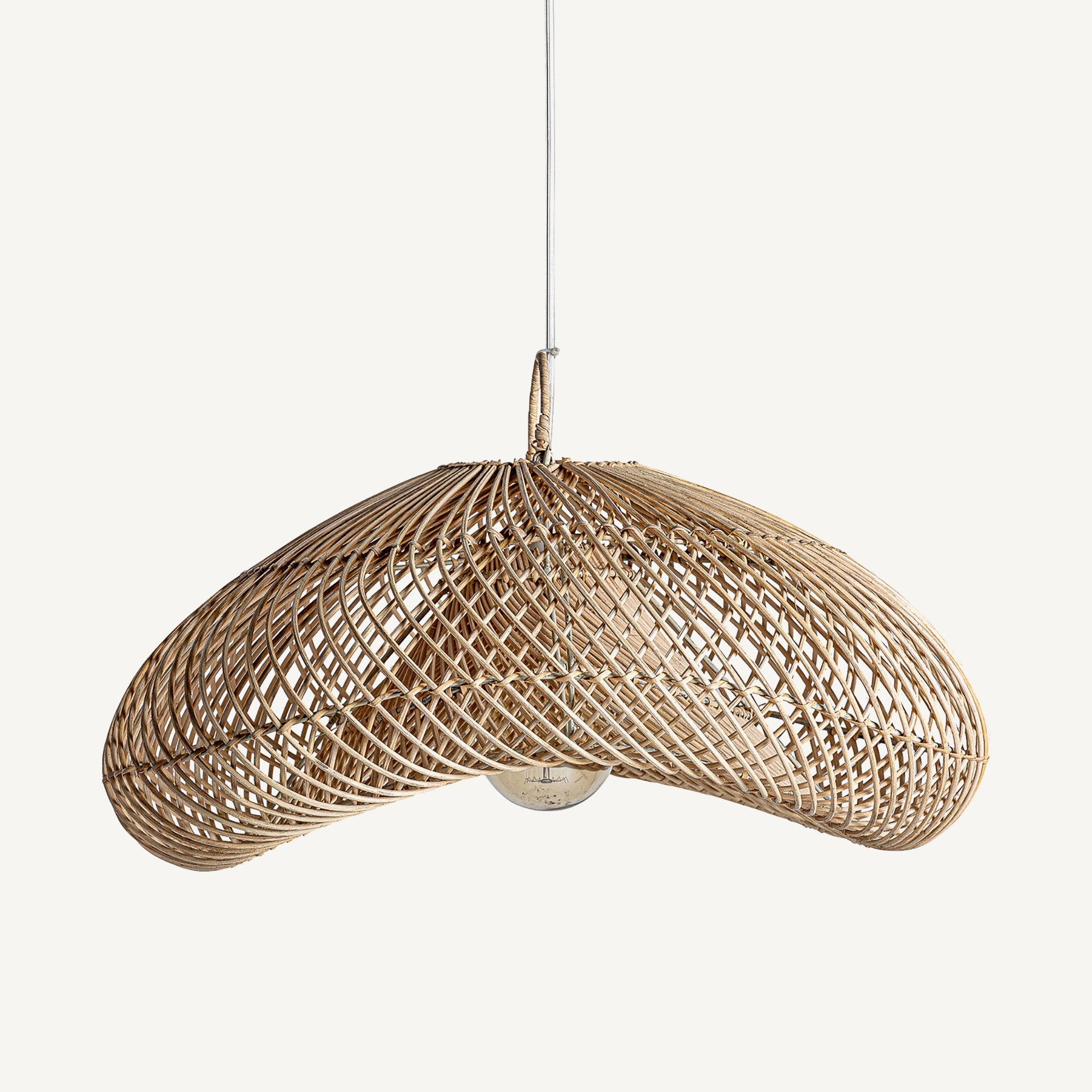 This contemporary ceiling lamp combines modern design with natural materials through its brown rattan construction. Its lightweight yet durable build offers a warm, inviting glow ideal for enhancing living spaces with subtle texture and an organic touch. Perfect for those seeking a stylish, eco-friendly lighting solution that complements a wide range of interior décors.
