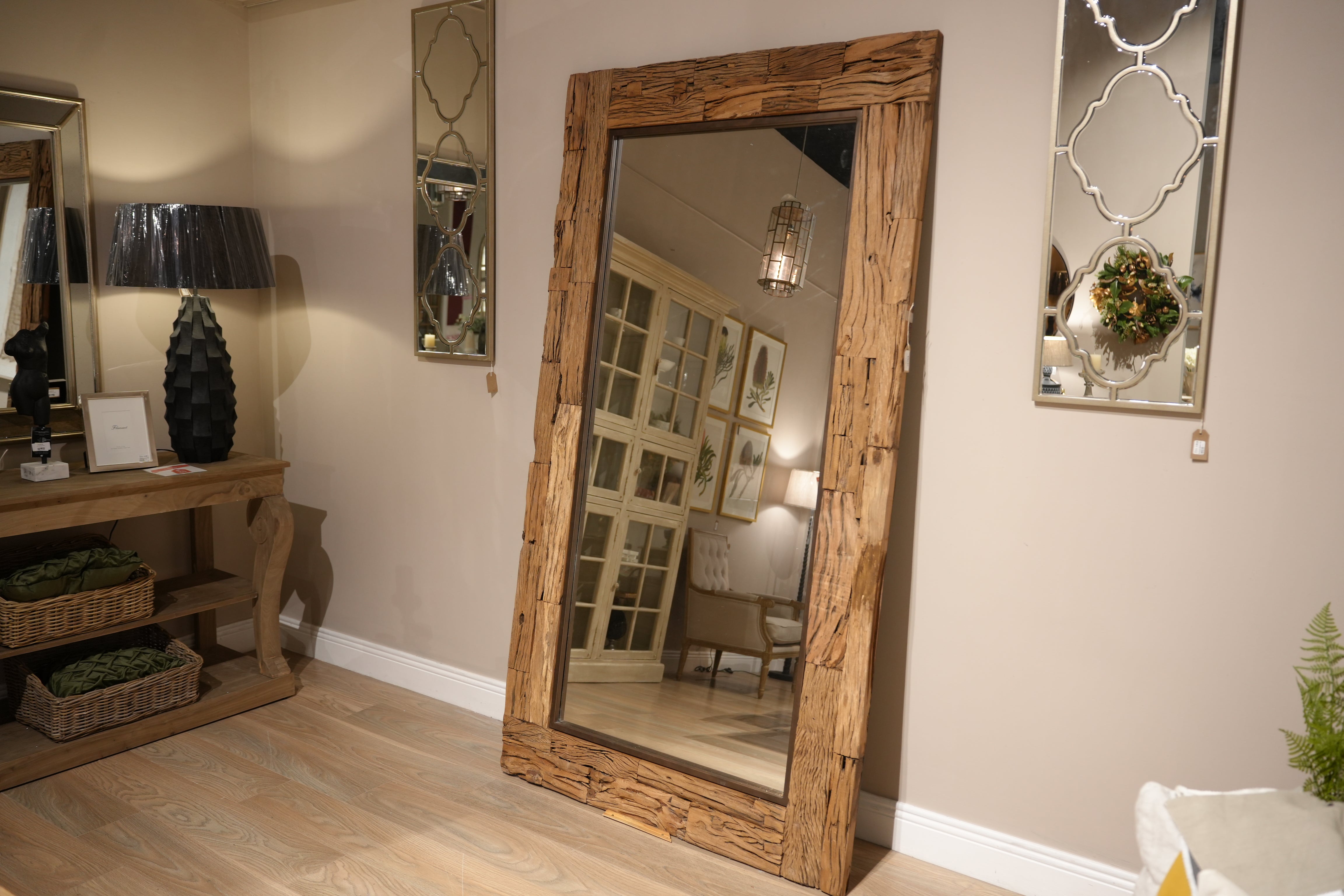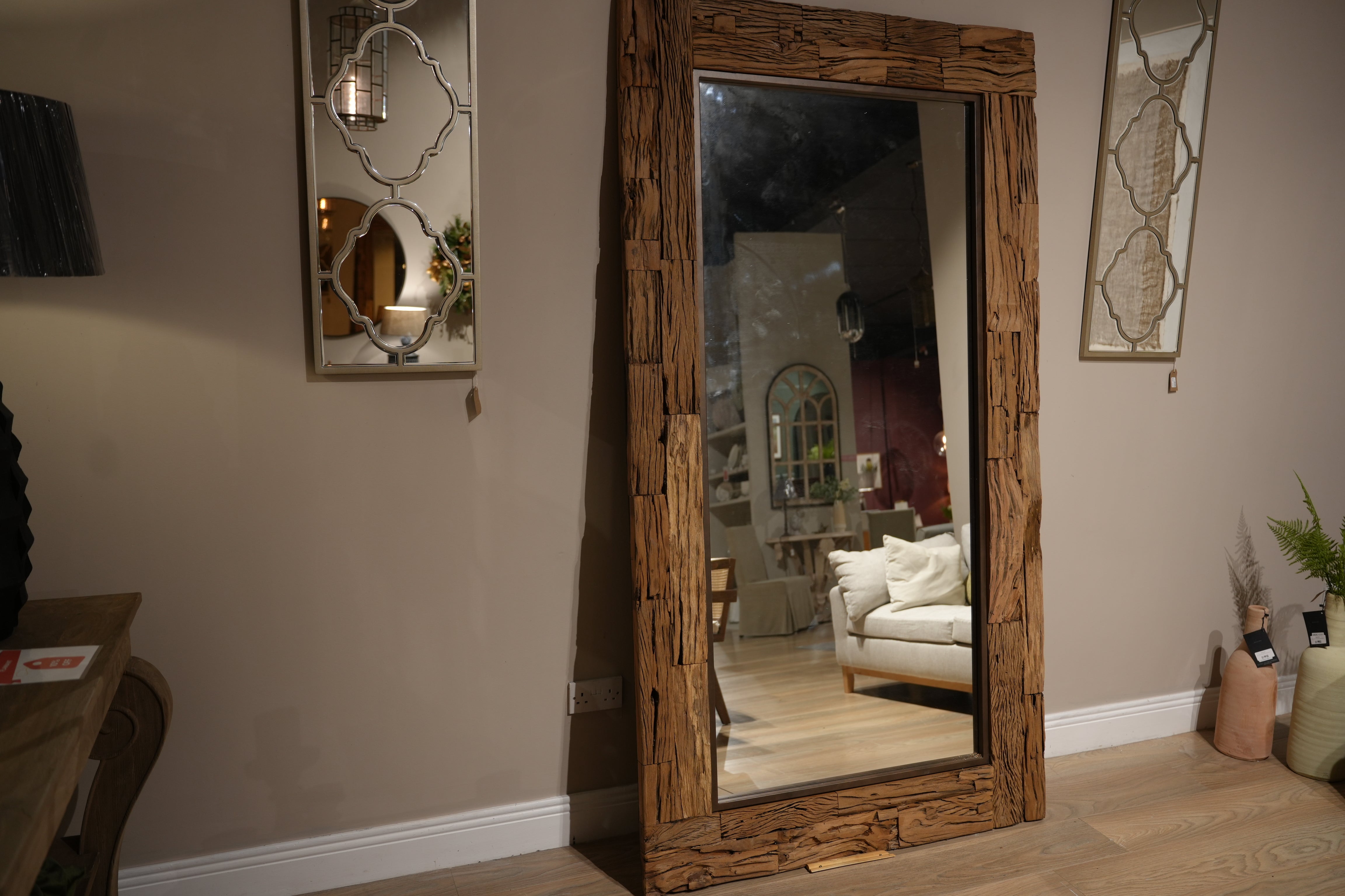 Crafted from reclaimed timber, this oversized floor mirror is designed to be more than a reflection. It’s a statement of material, texture, and time.