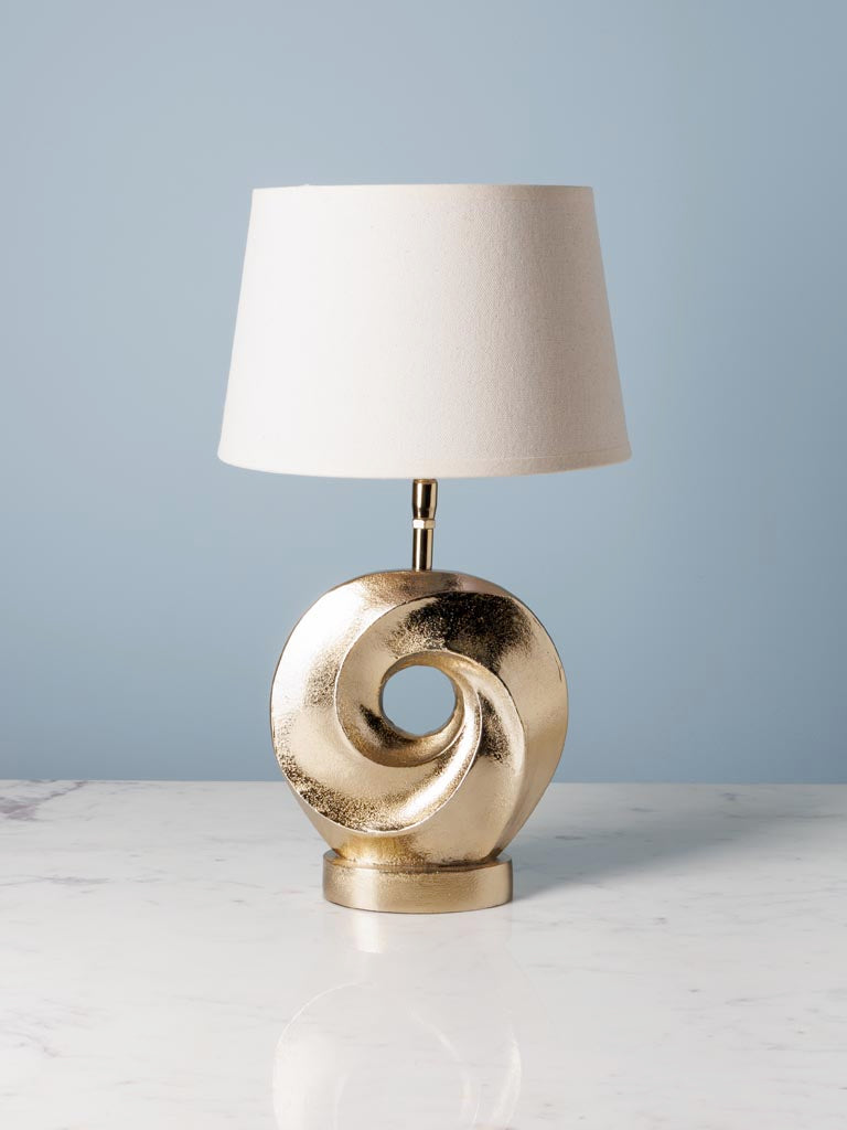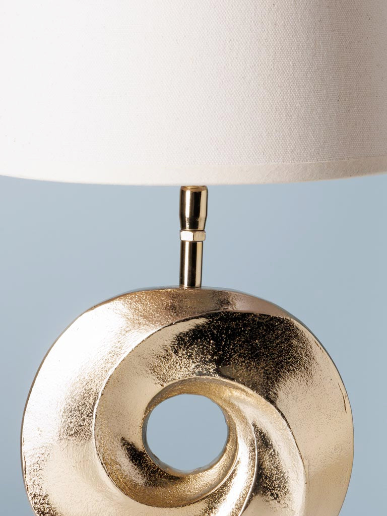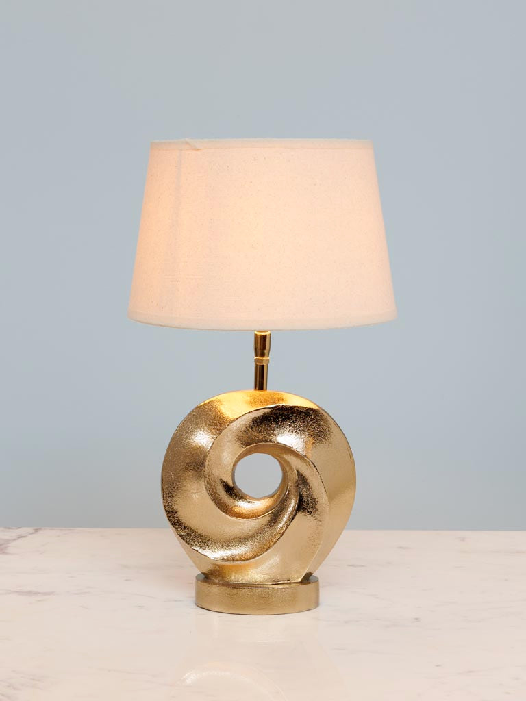 This Golden Table Lamp Orbite combines a sleek aluminum base with a refined linen shade, measuring 43 cm in height and 25 cm in diameter. Its minimalist design offers both durability and a warm, diffused light, making it an ideal choice for enhancing the ambiance of any modern interior.