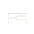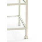 This Aino Glass Console Table combines a sleek cream-colored metal frame with a clear glass top, offering a refined rectangular design measuring 140x35x80 cm. Its sturdy construction supports versatility in entryways, living rooms, or hallways, providing both style and functionality for your home. The minimalist white metal base enhances durability while maintaining a light, contemporary aesthetic.