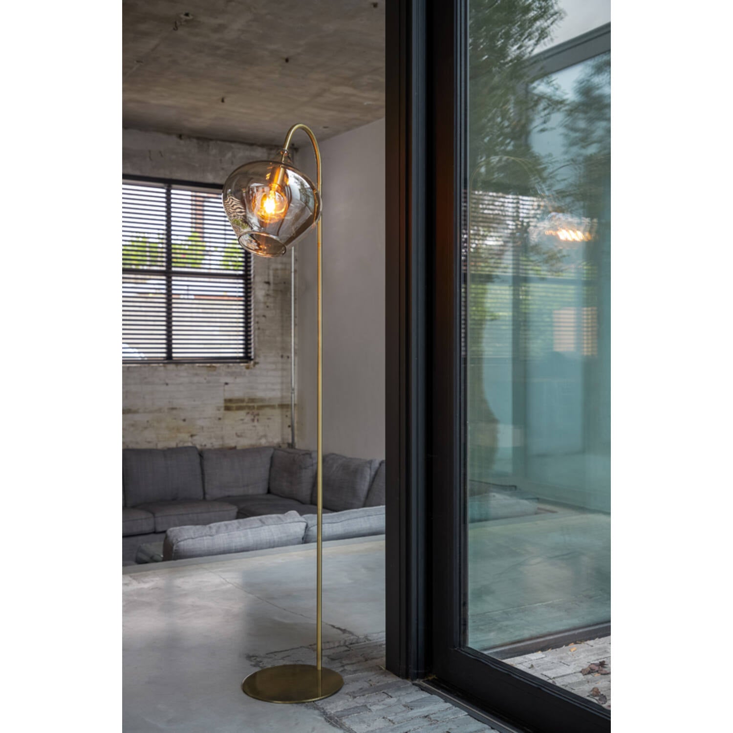 The Rakel Antique Bronze Floor Lamp combines elegant design with practical functionality. Featuring a bronze brushed metal frame with a matte finish and a tinted round glass shade, it casts a warm atmospheric glow with a subtle smoke haze. Its adjustable roof allows you to direct light precisely, making it perfect for reading areas. Measuring 45x28x160 cm and fitted with an E27 socket, this 25-watt lamp balances aesthetic appeal with versatility, ideal for elevating any living space with refined lighting.