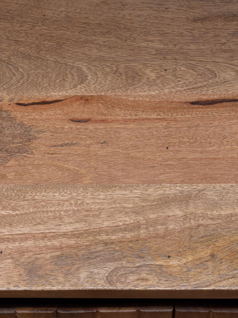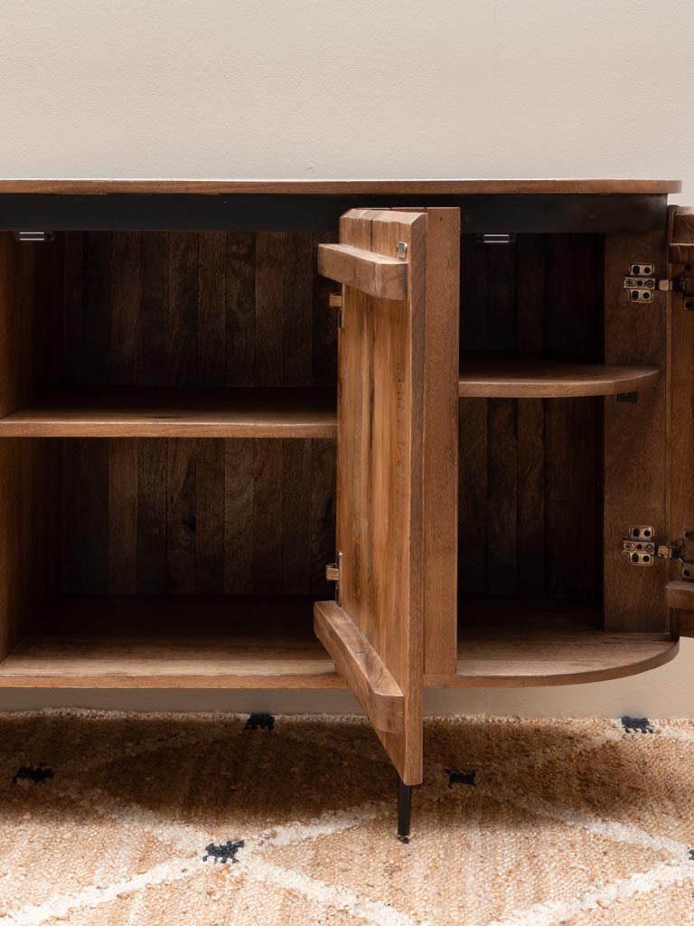 The Ainigma 4 Door Sideboard combines robust mango wood and iron for a durable and stylish storage solution. Measuring 77 cm in height, 170 cm in depth, and 48 cm in width, it offers ample space to organize your essentials neatly. Its natural materials and expert craftsmanship make it a versatile addition to contemporary interiors, blending functionality with timeless design.