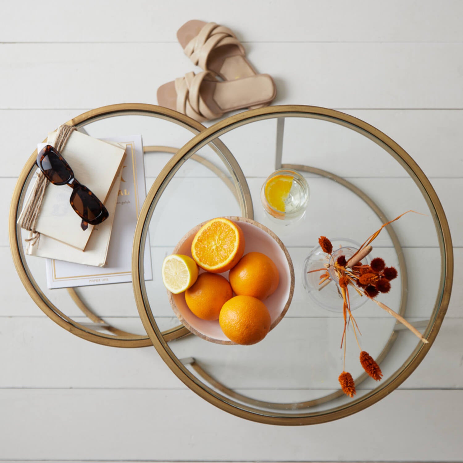 Side table with 2 glass levels