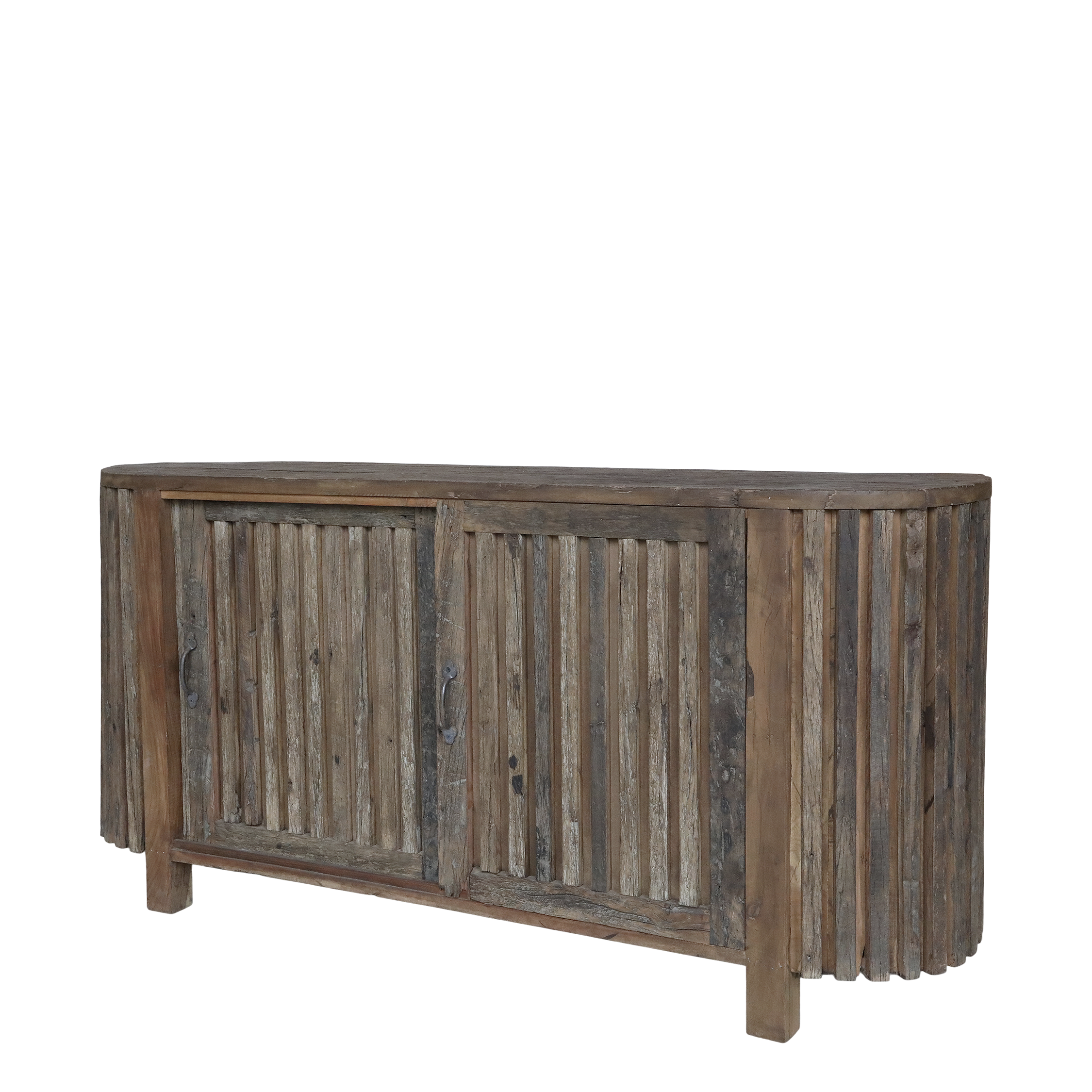 The Grimaud Sideboard with Grooves & Sliding Doors is crafted from beautifully patinaed recycled wood, embodying history and character through every detail. Its solid build and distinctive grooves highlight the material’s previous life, while sliding doors offer practical storage solutions. This piece enriches interiors by adding warmth and authenticity, making it a refined choice for those who value sustainable, timeless furniture with a story. Weighing 71 kg, it is designed to be both sturdy and functional within your living space.