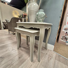 The Avignon Nest of 2 Tables combines country charm with refined contemporary design. Crafted with elegant cabriole legs, each piece showcases hand-painted Linen finishes with subtle distressing and contrasting off-white edges. This versatile set offers practical occasional furniture that complements both rustic holiday cottages and classic Georgian interiors with understated sophistication.