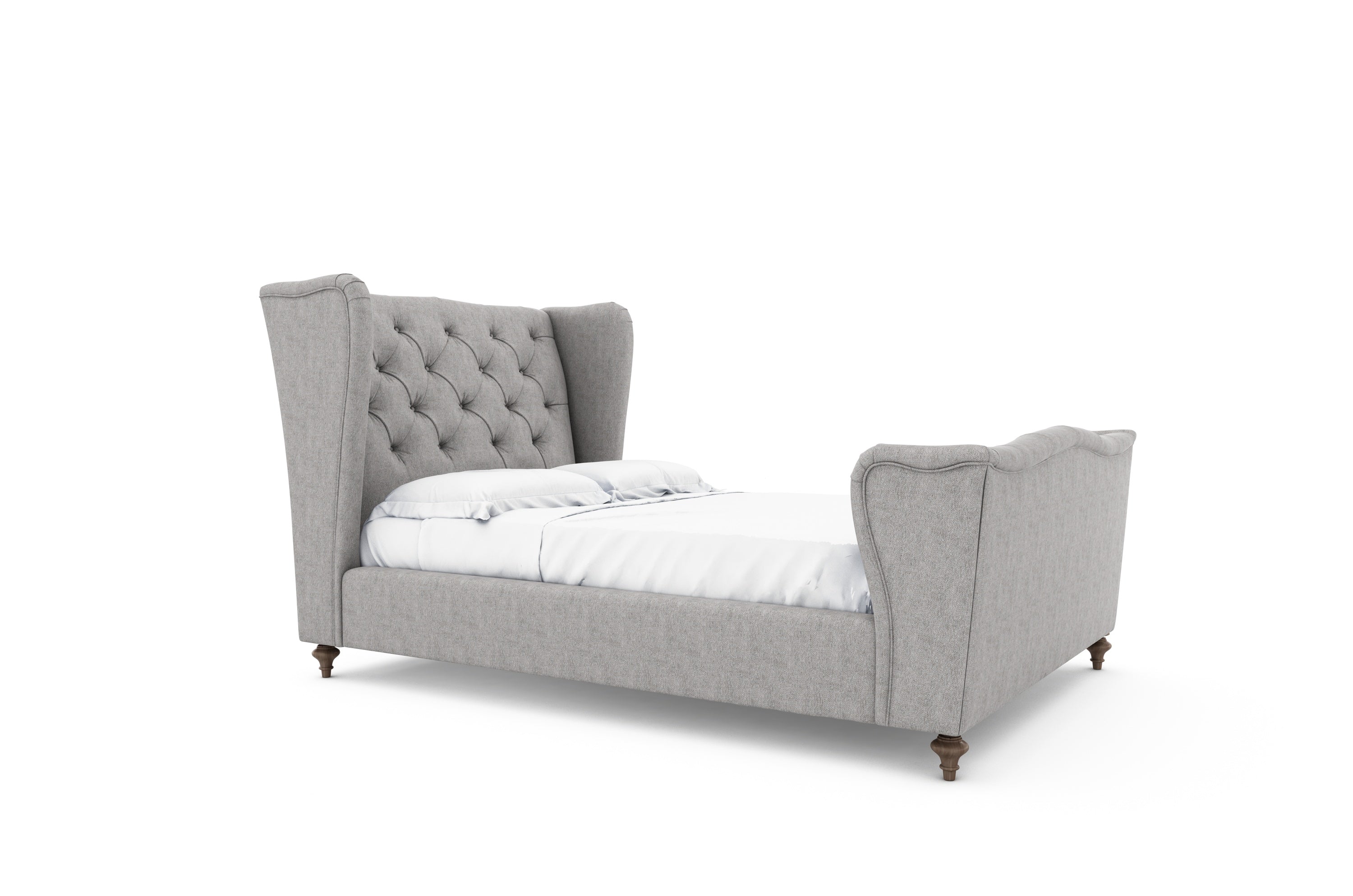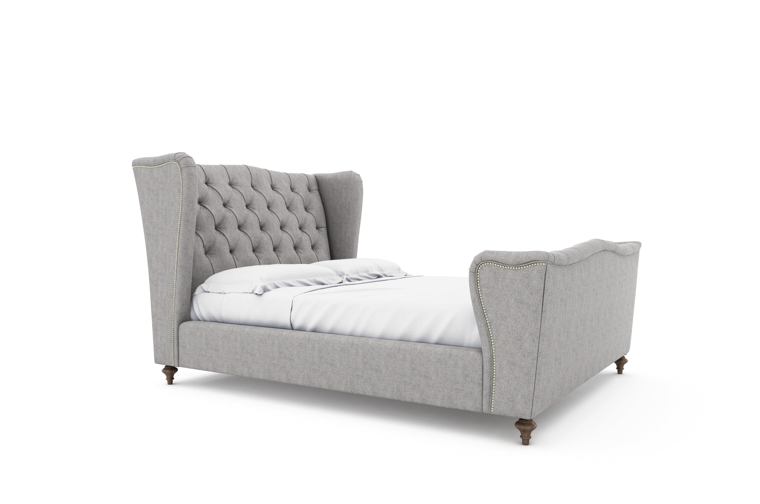 The Sussex Bed features a stately high back, elegantly turned legs, and a distinctive winged headboard and footboard, combining classic design with refined craftsmanship. Chrome beading accents provide a subtle yet sophisticated touch, enhancing the bed's overall glamour and making it a standout piece in any bedroom setting.