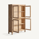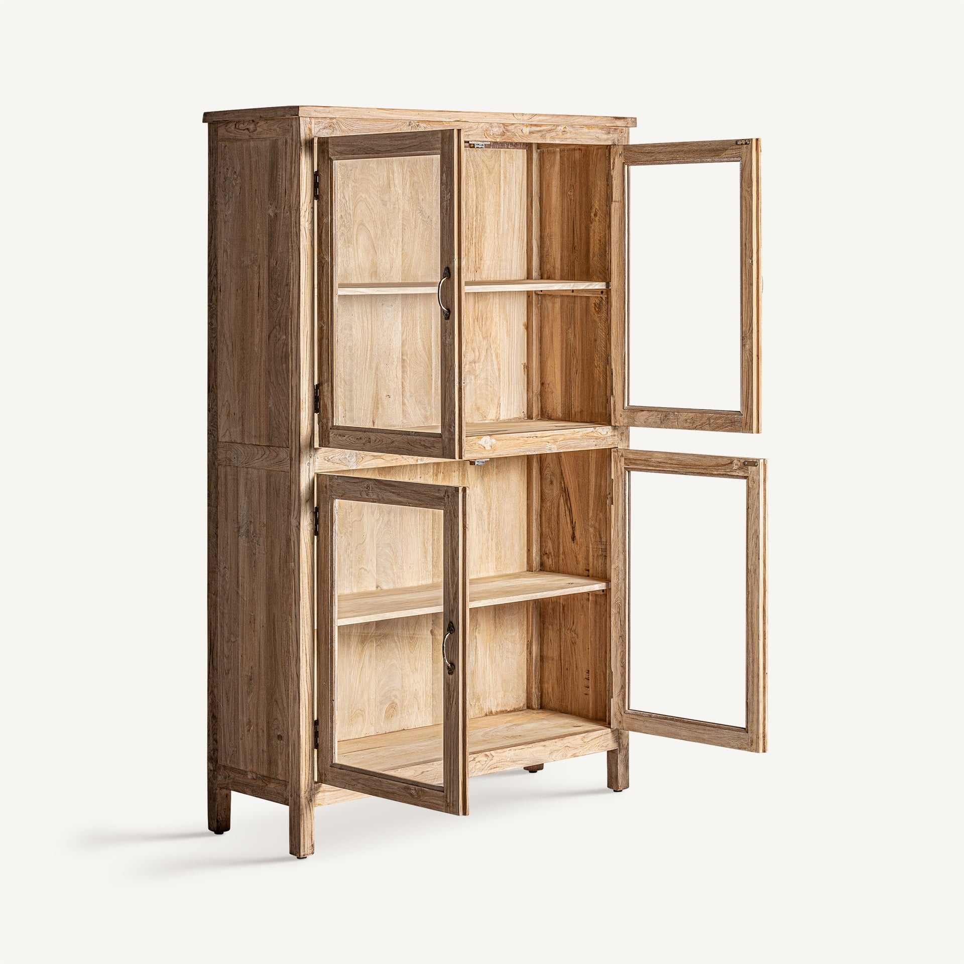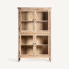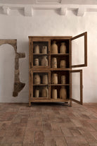The Marisol Glass Cabinet blends colonial and Mediterranean styles, crafted from recycled mango wood in a rich brown tone paired with clear glass. This artisanal piece showcases natural variations like knots and subtle imperfections, emphasizing its unique character and eco-friendly materials. Its design offers both aesthetic appeal and practical display space, making it a distinctive addition to any home.