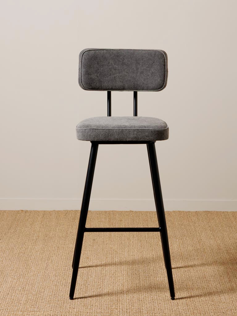 The Fairfax Barstool combines durability with contemporary style, featuring a robust iron frame and a comfortable cotton seat. With a total height of 105 cm and a seat height of 75 cm, it offers ergonomic seating ideal for kitchen counters or bar areas. Its gray stonewashed finish adds a sophisticated touch, while the 48 cm width and depth provide a balanced, compact footprint suitable for various interior settings. This barstool blends functionality with refined craftsmanship for expert-level design.