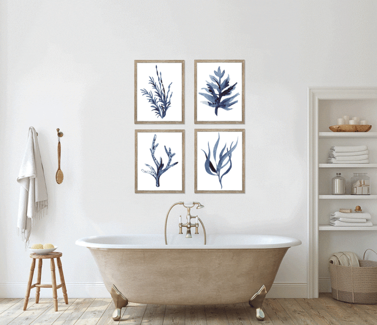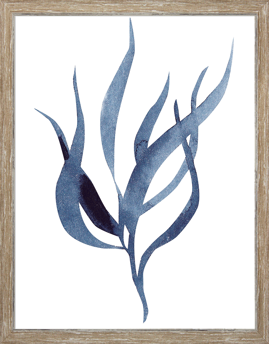 Indigo Seaweed IV is part of a curated four-piece series, each designed to stand alone or combine for greater visual impact. Clean, minimalist compositions in cool indigo tones pair beautifully with warm Distressed Walnut framing, creating a sophisticated focal point that complements both modern and traditional interiors.