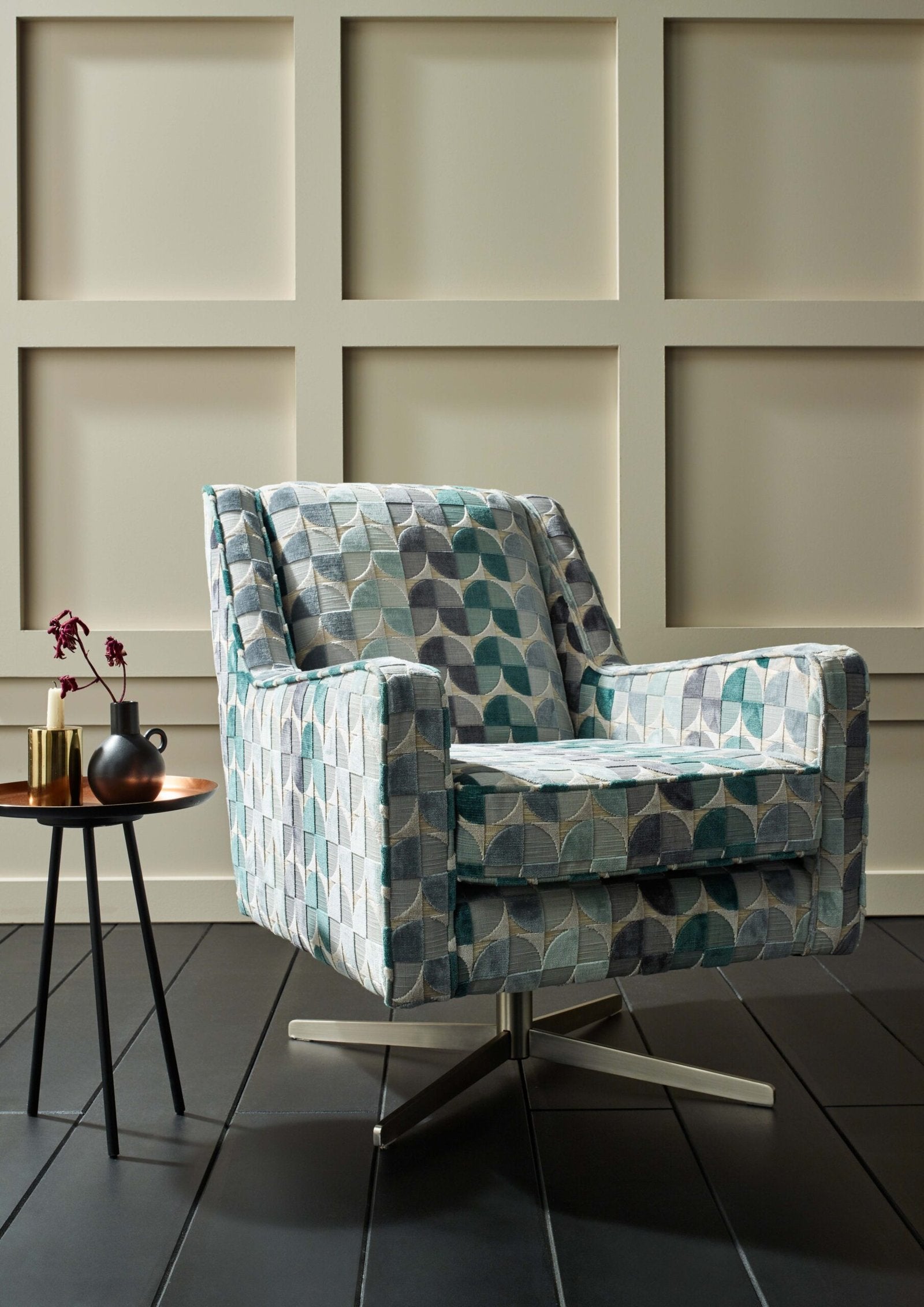 Choices for foot colour: American Walnut, weathered Oak, Chrome, Smoked Chrome
