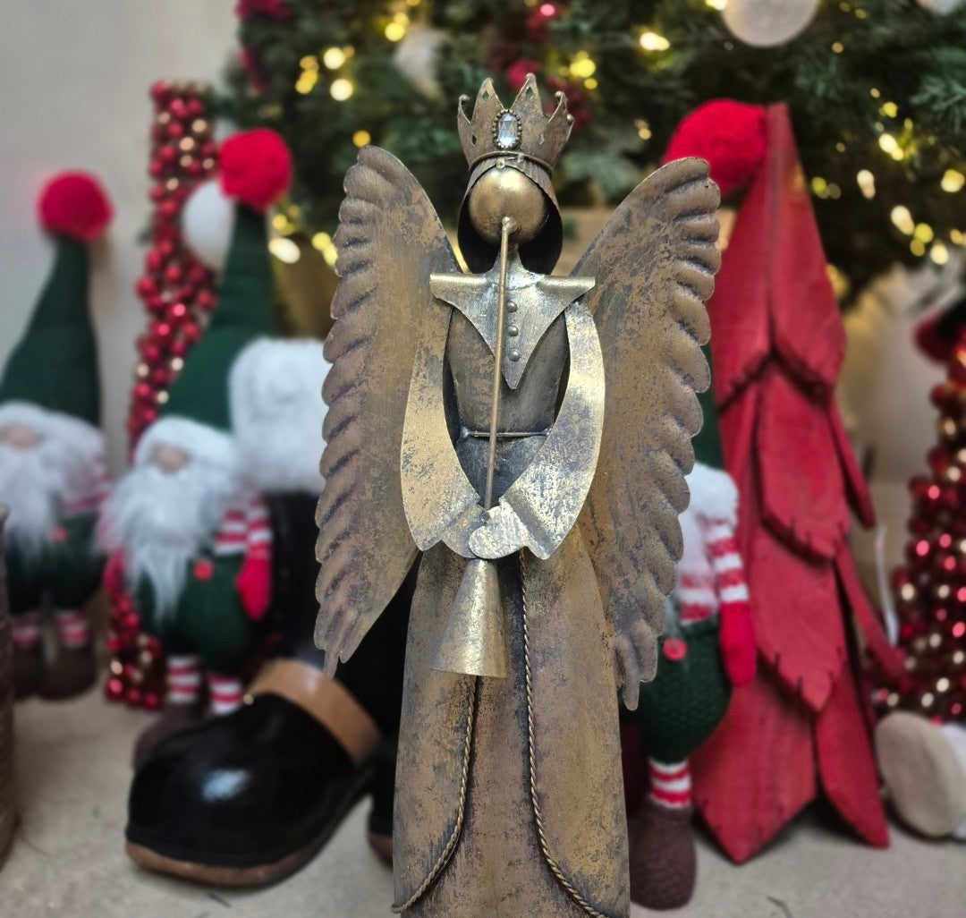 This exquisite bronze angel figurine stands 0.6 metres tall, embodying timeless Christmas elegance. Crafted with meticulous attention to detail, the trumpet-playing angel features a refined patina finish that captures light beautifully. Perfect as a standalone focal point or integrated into your festive displays, this piece brings sophisticated charm to any holiday setting. Its classical design transcends seasonal trends, making it a cherished decoration year after year. An investment in enduring yuletide beauty.