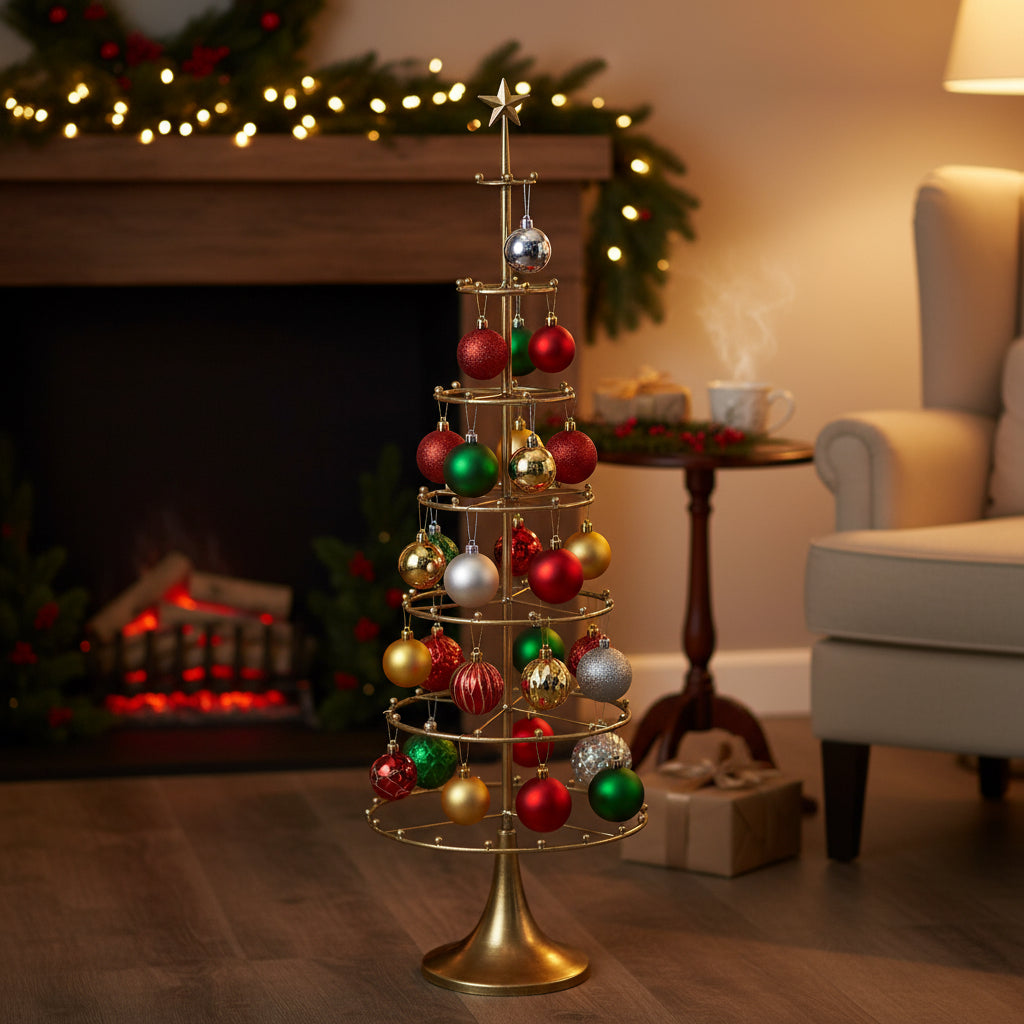 This Christmas Tree Bauble Display stands 1.35 metres tall with a diameter of 0.41 metres, providing an elegant and spacious structure to showcase your festive decorations with expert precision.