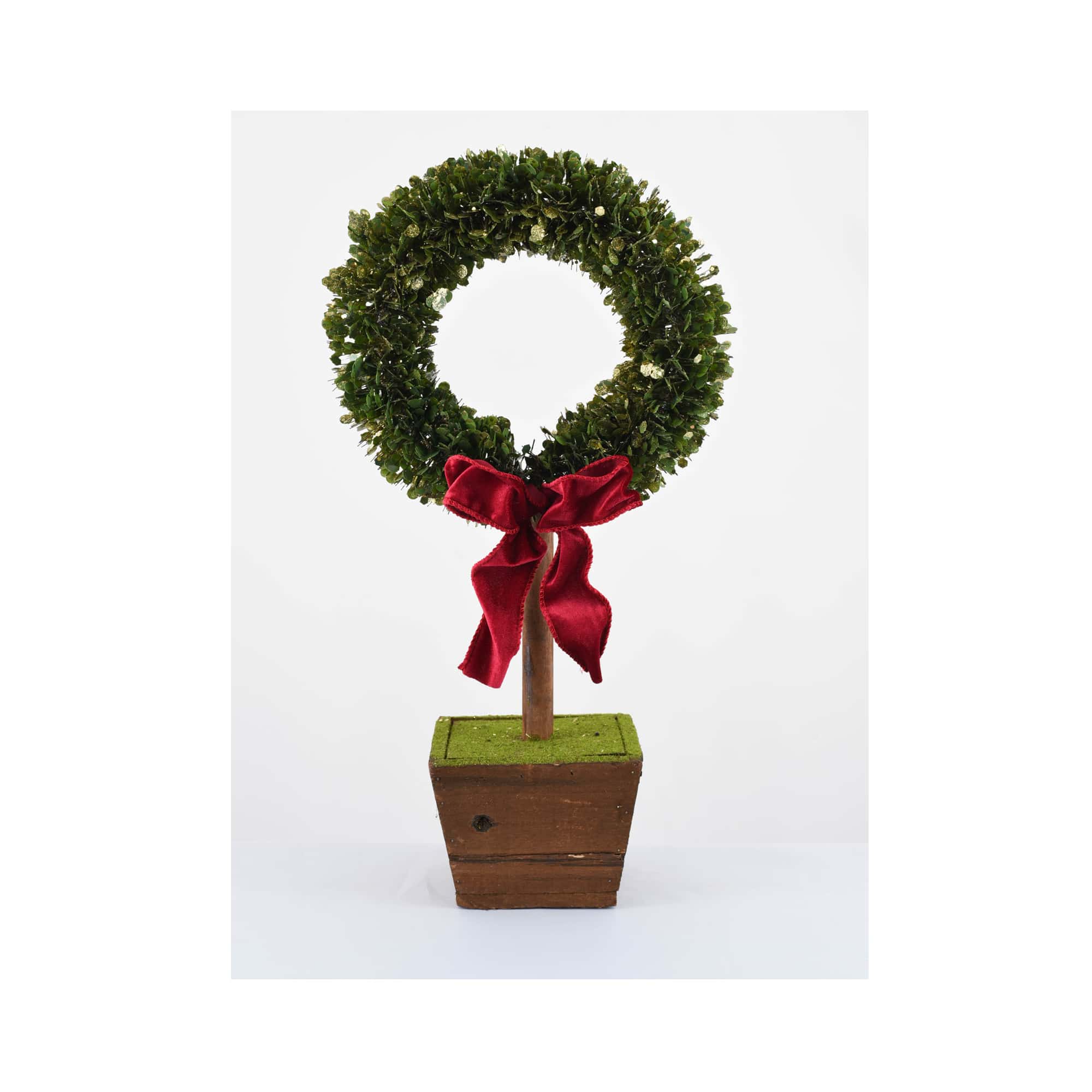 Potted Boxwood Small Wreath Tree With Burgundy Bow 38cm