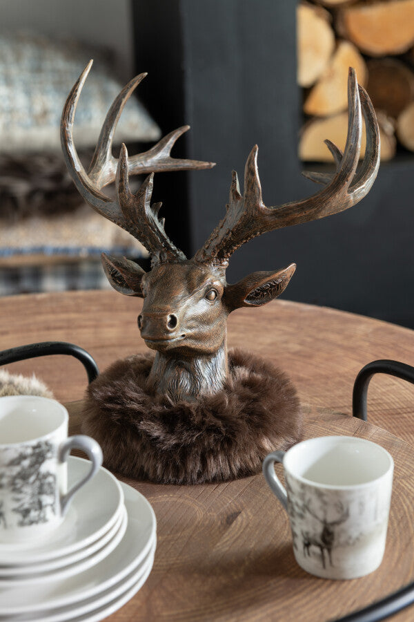 Crafted from durable polyresin, this large brown deer head decoration measures 25 cm in height and 22 cm in both length and width, adding a sophisticated touch to your indoor holiday décor. Its detailed fur texture captures a realistic appearance, making it an elegant centerpiece or wall accent during the festive season. Lightweight at just 0.51 kg, it’s easy to position and complements a range of interior styles. Designed exclusively for indoor use, this piece ensures lasting quality without exposure to outdoor elements.