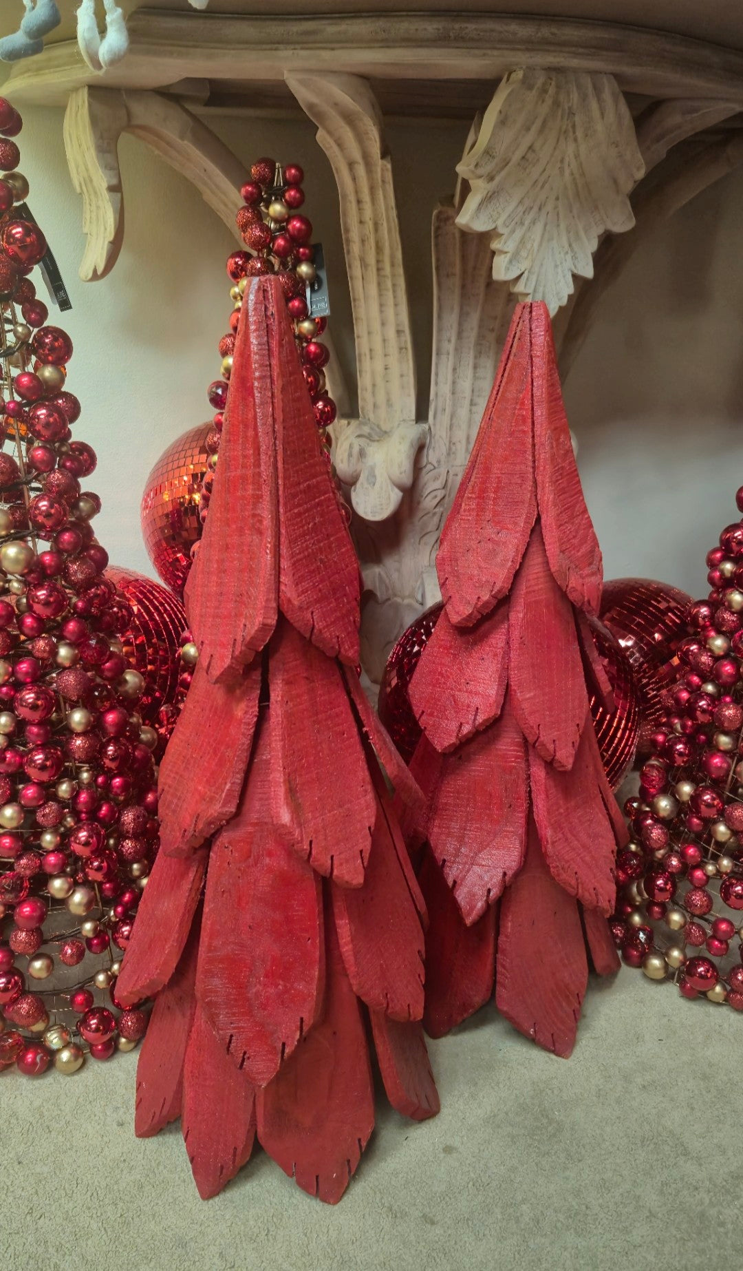 Crafted from durable wood and finished in a vibrant red, this small Christmas tree piece stands 70 cm tall with a compact 35 cm width and length, making it an ideal decorative accent for indoor holiday displays. Weighing just 2.29 kg, it is easy to move and position. Designed exclusively for indoor use, it adds a festive touch to home or office environments while providing sturdy, long-lasting seasonal charm.